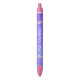 This pen has two fantasy crescent moon with faces and abstract decorations in colours of purple, yellow, and blue on a purple sky background.
