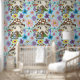 Fantasy Mouse Mushroom House Floral Wallpaper