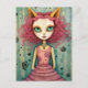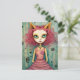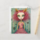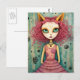 Fantasy Pink Cat Alien Woman Mixed Media Postcard