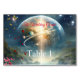 Flying paper scrolls in front of fantasy gardens and imaginary panoramas are used in celebration designs for invitation cards, matching gift products, and wall art. They can be found on any personalised invitation card, in print or as a download.