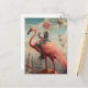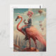 A woman rides a giant pink flamingo fantasy AI generated painting