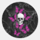 Fantasy skull and hot pink butterflies classic round sticker