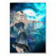 Ethereal blue sky - full moon glowing through the clouds- Beautiful blonde Moon Goddess, Sky Siren pointing to her beautiful White dove carrying a single rose