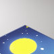 A stylised, fantasy of the skyline of Paris, under a blue, starry sky, with a full moon