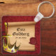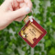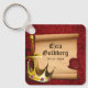 Fantasy sword and crown Jewish Bar Mitzvah personalised keychain favour. This mediaeval times fantasy sword and sorcery Bar Mitzvah keychain favour features a red velvet look background, a simulated parchment scroll, a king's or prince's crown, a sword, and a wax seal with a subtle Jewish Star of David.