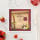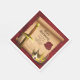 Fantasy sword and crown Jewish Bar Mitzvah personalised paper napkins. This mediaeval times fantasy sword and sorcery Bar Mitzvah paper napkin features a red velvet look background, a simulated parchment scroll, a king's or prince's crown, a sword, and a wax seal with a subtle Jewish Star of David.