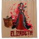 3d character of a beautiful lady dracula holding a cup and a bronze gold tub.