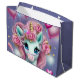 Fantasy White Baby Unicorn with pink Hearts Large Gift Bag
