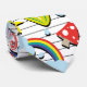 Fantasy flowers, mushroom, hearts, stars, clouds and rainbows over a lined-paper look.