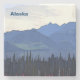 Blue mountains, blue lake water, dark green trees, pink fireweed, and overcast. A depiction of summer in the far north. Customisable text reading "Alaska" also appears. Mosquitoes not included.