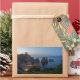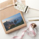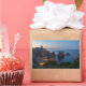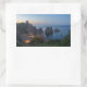 Rectangular photo sticker with the big Faraglioni rocks in the water of the Mediterranean Sea and the old red Tonnara, tuna factory in Scopello, at the north coast of Sicily, Italy at the Blue Hour of dusk.