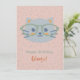 This personalised birthday card of a cute cat with huge glasses is perfect for kids. The colours blue, yellow, and orange and the confetti in hearts, dots, and stars give this colourful birthday card a unique feel. Wish your toddler a happy birthday with a heartfelt note. You will bring a smile to their face!