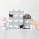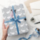 Cute sheep gift wrapping paper, featuring cute white sheep and a black sheep smiling. Background colour can be personalised to your own choice of colour, currently in mono grey. A great way to give, knitted wool items, farming gifts or gifts to animal or sheep lovers or even for the black sheep of the family. Uniquely designed by Sarah Trett.