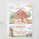 Calling all party animals to celebrate with this "Farm Party" invitation. Featuring a red barn, cute watercolor farm animals, and a tractor. Perfect for a boy's barnyard-themed first birthday. Easily customize with your child's name and event details.