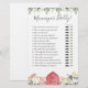 Farm animals themed baby shower mummy or daddy game card features a watercolor farm animals illustration and watercolor greenery eucalyptus garland and elegant handwritten style font.