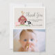 This cute and modern gender-neutral birthday thank you photo card features a pig, chicken, and cow with a red barn on a light beige background framed by a white border. The reverse side features a white background with black cow patterns. Personalise for your needs. You can find matching products at my store.