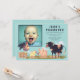 Just click on the example photo thumbnail above right to upload your own photograph from your computer or device and then type over the example text with your own... to have your own unique, one of a kind, personalised invitation for you little one's upcoming birthday party. It will be a keepsake invite to cherish and even scrapbook or save!