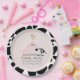 This cute and modern "oink, moo, cock-a-doodle do" girl baby shower paper plate features a pig, chicken, and cow with a pink barn on a blush pink background framed by a border in black & white cow patterns. Personalise for your needs. You can find matching products at my store.
