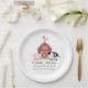 This cute and modern "oink, moo, cock-a-doodle do" gender-neutral birthday paper plate features a pig, chicken, and cow with a red barn on a white background framed by a white border. Personalise for your needs. You can find matching products at my store.