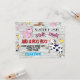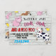 Super cute farm animals with fun funky fonts birthday party thank you note invitation. Great for a boy or girl! Features a pig, cow, horse and baby chicken on a white washed barn wood background.