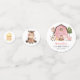 Add a personal touch to your birthday celebration with these stylish and memorable party items! Design features farm animals (cow, horse, sheep, pig, rooster, chicken) and pink barn on white background.