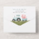 Invite friends and family in style and set the tone for your special day with this charming baby shower invitation. Design features farm animals (cow, horse, sheep, pig, rooster, chicken), blue barn and blue tractor on white background.