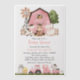 Invite friends and family in style and set the tone for your special day with this charming baby shower invitation. Design features farm animals (cow, horse, sheep, pig, rooster, chicken), pink barn and pink tractor.