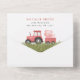 Invite friends and family in style and set the tone for your special day with this charming baby shower invitation. Design features farm animals (cow, horse, sheep, pig, rooster, chicken), red barn and red tractor on white background.