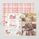 Calling all party animals! Celebrate your little one's big day with this editable farm animals photo birthday invitation! A gender-neutral design, featuring cute farm animals around the edge of the cards, dressed up in party hats and holding balloons. The sun is shining, there is a red barn, a little sign to the farm, and a tractor. Your custom photo is on the right. This barnyard-themed invite is perfect for any boy or girl's birthday on the farm. Cards reverse to a red watercolor gingham pattern for a rustic country feel. Browse the collection for matching items or visit our store for more birthday party invitations.