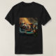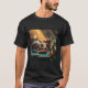 I give wanted to give this a 4 instead of a 5 because these Basic DARK T0shirts run unexpectedly SLIM or Narrow. Which is great if you do not have a potbelly, but I have a paunch. It isn't the shirt's fault that I've got a beer belly. The design and shirt itself is a quality cotton shirt. The color is more of a deep purple, but still a very pretty color. The Basic DARK T-shirts run a bit SLIMMER than the Basic Ts. The neck is a fraction narrower (or seems to be narrower) also. I'm a paunchy middle-aged woman and my neck is 12 inches (31cm) thick and the neckline fell about the same as in the photo of the man, and I had the desire to tug it a bit. So if you're a thick necked man or like loose shirts, be aware these are slimmer shirts. Once I get rid of my lockdown paunch it'll look great. The shirt washed well in cold water with no apparent bleeding. We don't have a dryer, so it hung dry. Did not shrink. Love the colors and the design. The design looks smaller on my shirt than it does on the model on-line. But still, it looks good on the shirt. The printing looks as it does on the model, just the size seems fractionally smaller. Washed garment in cold water, hung dry and design appeared unaffected.