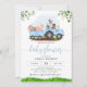 Cute farm animal invitation for your Farm or Barnyard-themed baby shower! Featuring farm animals and a blue tractor in a watercolour style.
