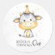Add a playful farmyard touch to your party favours with these adorable round cow-themed first birthday stickers! Featuring a smiling watercolor baby cow in a festive party hat and surrounded by golden confetti stars, these stickers are perfect for sealing treat bags, decorating cups, or adding a personalised detail to thank-you gifts.