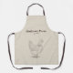 A rustic farm apron in brown tones, featuring an artful line illustration of a hen or chicken. Texts are fully customisable. It could be perfect for a family farm, food markets, grocery shops or just as a gift to a farmer!