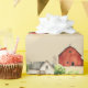 Farm scene wrapping paper on a roll with length selections. Beige color with red barns and old farmhouse design. Farm animals, donkeys, goats, sheep, ducks, dogs, pigs and chickens in coops fill out the design. Lush, green trees add more interest and color. The seamless, repeating pattern will print on any size roll, of high quality paper, to use for crafts or wrapping gifts. This fun pattern is perfect for decorating a child's room.