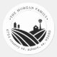 modern farmhouse sticker with encircled return address and a choice of two backgrounds white and kraft