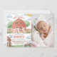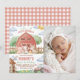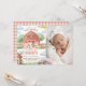 Showcase your little farmer with this barnyard photo invitation. Decorated with a hand-painted watercolor red barn, windmill, and friendly farm friends. A wonderful way to personalize your son's "First Birthday on the Farm" celebration.