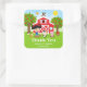 Farm Red Birthday Black Hair Girl Thank You Square Sticker