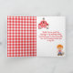 This cute and fun thank you card features a red hair boy with fair skin beside a red barn with a rooster wind vane. There are adorable farm animals such as a cow, pig and hen. In the background is a bright blue sky, apple trees, sunshine, butterflies and daisies. The text combines bold and sans serif fonts for a stylish and modern look. This is perfect for a farm themed birthday party.