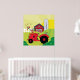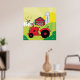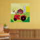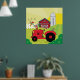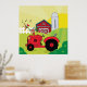 Farm Scene with Singing Rooster on Tractor Poster