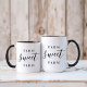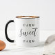 Chic typography design with "Farm Sweet Farm" quote. Click Customise It to change fonts and colours, or add your own text and images to create a unique one of a kind coffee mug design.