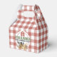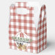 Send your little guests home with a bushel of fun using these adorable farm-themed favor boxes! Featuring a classic red and white gingham background, each box is bursting with barnyard charm and showcases a cheerful group of farm animals.