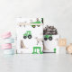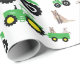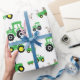 Playful farm tractor wrapping paper featuring a repeat pattern of green tractors and farm dogs. Perfect for kids’ birthdays, farm-themed parties, and tractor lovers. Coordinates with matching invitations and party supplies for a cohesive look.