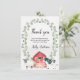Are you looking for a sweet farm themed baby shower thank you card? This design features a cute group of farmyard animals a cow, sheep, goat and pig and a watercolor wreath on a scanned watercolor paper background image. All the text on the card is editable making it very easy to use. This farm animals baby shower thank you card is ready to be personalised. Same design baby shower invitation is available at the store as well as favour stickers.