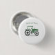 A button with an illustration of a green and grey farm tractor in cartoon style! A nice idea for gift to a farmer, a kid or a countryside family!