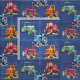 Farm Tractor Denim Blue Design Fabric