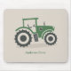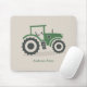 A light beige mouse pad with an illustration of a green and grey farm tractor in cartoon style and customisable text below! It could be a perfect gift to a farmer or a countryside man!
