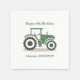 Birthday napkins with an illustration of a green and grey farm tractor in cartoon style. You can customise texts and used them for any another party such as countryside party, wedding, retirement, bachelorette party, backyard party, neighbours party, summer reception, etc.