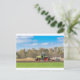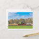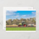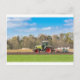 Farmer on tractor ploughing sandy soil in spring postcard