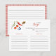Cute Rustic hand painted watercolor fresh vegetables with red and white gingham border in the back Recipe card. Perfect for Fresh off the market themed bridal shower bridal shower or baby shower.