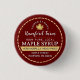 Classy maple syrup button to promote your traditionally made pure local maple syrup. Gold sugar maple leaf on red background.